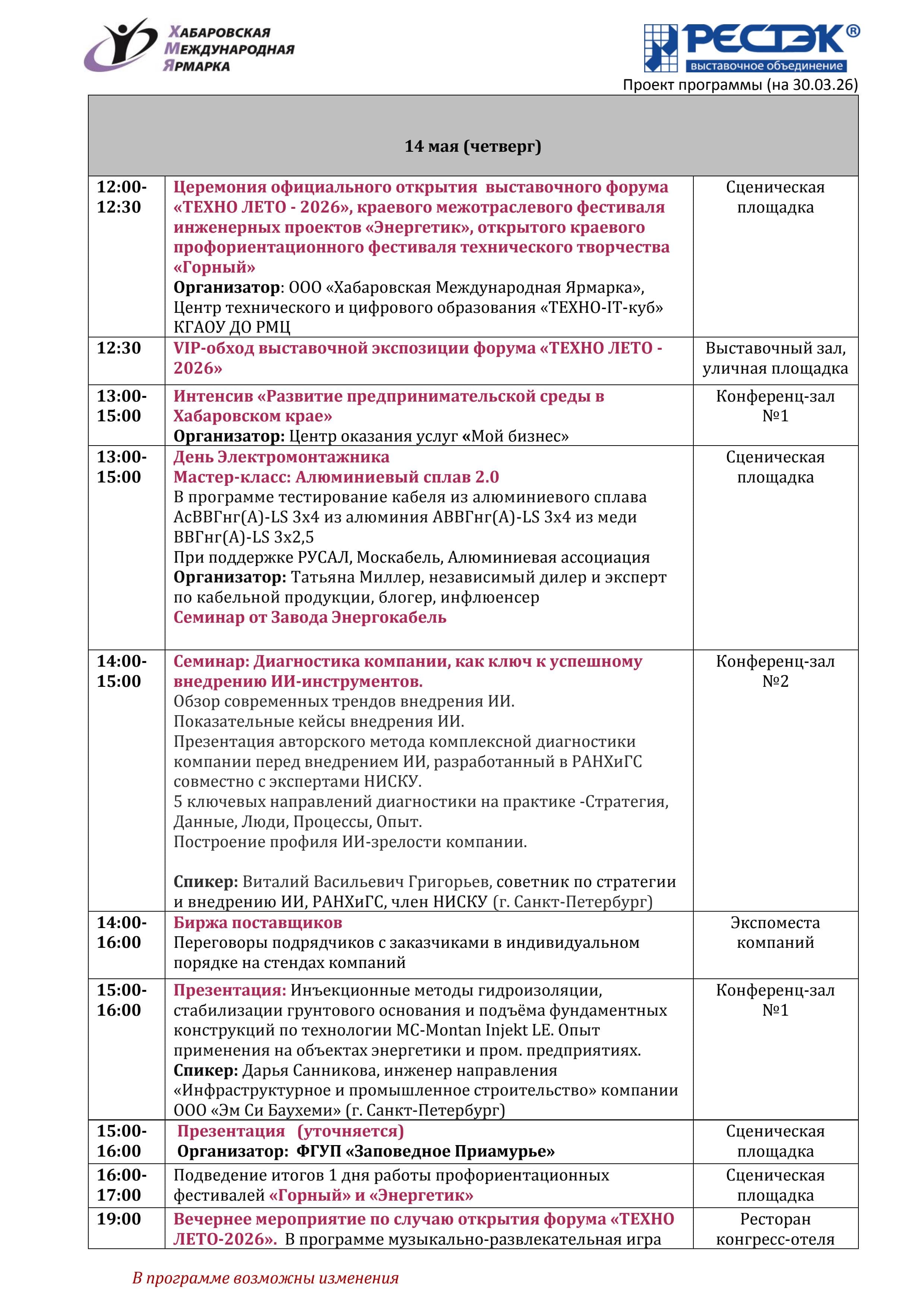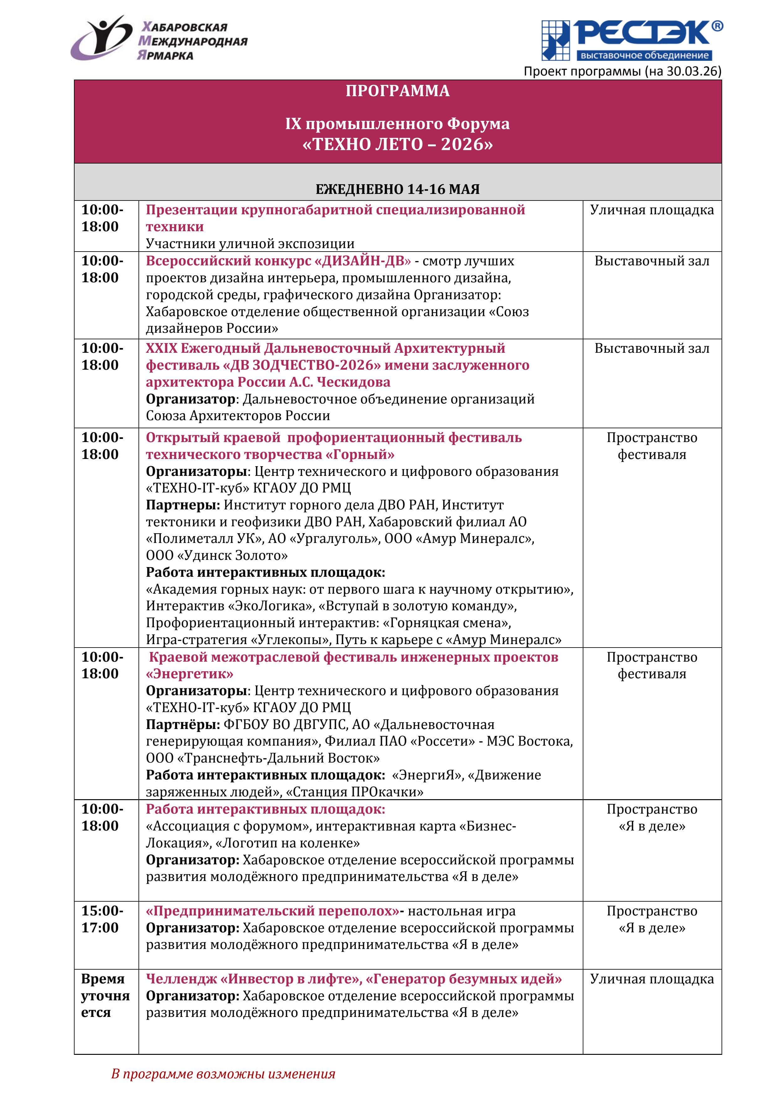 На протяжении 29 лет каждой весной строительный сезон в Хабаровске сопровождает специализированная выставка «Архитектура, стройиндустрия ДВ региона. Город. Экология». Интерес к этому мероприятию из года в год стабильно держится на довольно высоком уровне, что подтверждается количеством участников и посетителей. Выставка состоится в рамках 9-ого промышленного форума «ТЕХНО ЛЕТО-2026», где на одной площадке будут представлены еще три отраслевых выставки: «Энергетика. Энергосбережение», «Транспорт ДВ региона. Техника. Сервис. Перевозки», «ГОРНОЕ ДЕЛО. Оборудование. Технологии. Спецтехника». Мероприятия призваны способствовать выстраиванию новых бизнес коммуникаций, развитию межрегионального сотрудничества, консолидации усилий науки, бизнеса и власти.
